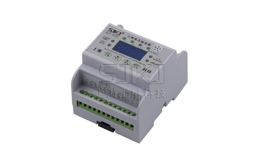 當繼電器2、3端子接入工作電源時,數碼管顯示當前輸入的實時電壓。長按SET設置鍵1秒,便進入L1電壓整定值,可以通過移位鍵和增加鍵設定所需的電壓值,改動的數碼管會閃爍,允許修改。再按一下SET設置鍵,此時時間標識燈點亮,顯示為L1電壓所需的延時值,也通過移位鍵和增加鍵設定所需的時間值。然后再按SET設置鍵,進入設置L2電壓整定值,設定的方法和前面設定一樣及L3電壓同樣如上設置。均設置好后,再按SET設置鍵界面會進入三相電壓各相所需投入使用還是退出。比如只要A、C相工作,B相退出,通過移位鍵將按至B字母位置,按下增加鍵,當數碼管顯示時,說明該相已經退出運行。需要三相均有輸出工作,可以工作增加鍵將相序字母點亮。跳過相序字母顯示頁面,來到過量、欠量方式選擇頁面,可根據自己所需通過增加鍵來設定,0代表欠量(欠壓),1代表過量(過壓)。完全設定好后,可以按ENTER確定鍵快速退出。也可以通過繼電器自動5秒后退出,所設置參數自動保存。退出時顯示實時電壓和所投入的相來回切換數值。若有個別參數設定,可以在設置好后,直接按ENTER確定鍵快讀保存并退出。所需投入的相,指示燈會點亮,會顯示當時實時的電壓數值,未投入的相燈也會燈亮,顯示會是, 無數值顯示。繼電器達到所設定值,動作后,由TIRP動作燈會點亮,實際線路電壓低于或高于所設定的返回值,指示燈切換回來。正常運行情況下,RUN運行燈、電壓設置表示燈常亮。L1、L2、L3來回切換運行。當輸入電壓任意一相滿足動作條件,繼電器動作,電壓標識燈熄滅,表示延時時間已到動作。當輸入接近動作條件時,繼電器進入動作預備狀態,所有芯片資源用來計算輸入值,一旦滿足條件,立即啟動計時,繼電器設有啟動量連續判斷功能和突變量連續判斷功能,能夠有效迅速的判斷輸入值,并躲過短時干擾。
