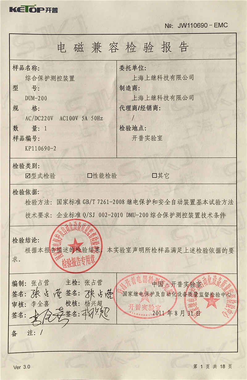 您現(xiàn)在的位置: 首頁 >> 客戶服務(wù) >> 資質(zhì)證書 > DUM-200檢驗報告