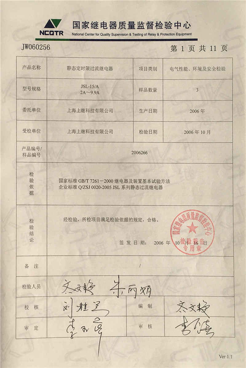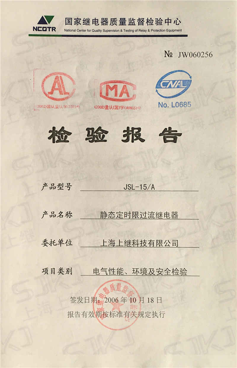 您現在的位置: 首頁 >> 客戶服務 >> 資質證書 > JSL-15/A檢驗報告