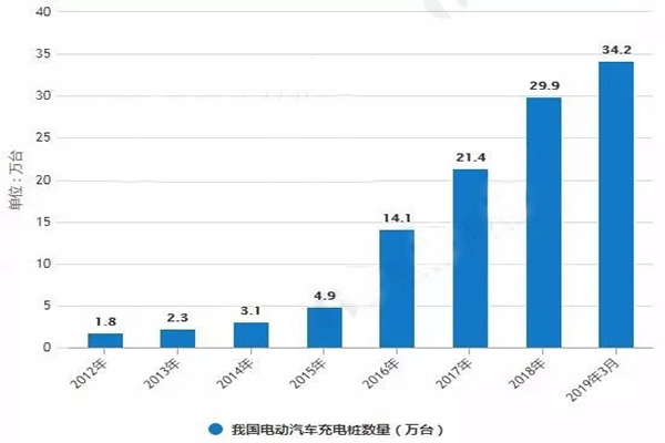 截至2018年全國充電樁數量為29.9萬臺,同比增長39.72%。進入2019年3月,聯盟內成員單位總計上報公共類充電樁38.4萬臺,其中交流充電樁21.9萬臺、直流充電樁16.4萬臺、交直流一體充電樁0.05萬臺。隨著新能源汽車普及度的提高,電動汽車充電樁必然會呈現基礎設施級別的普及程度。