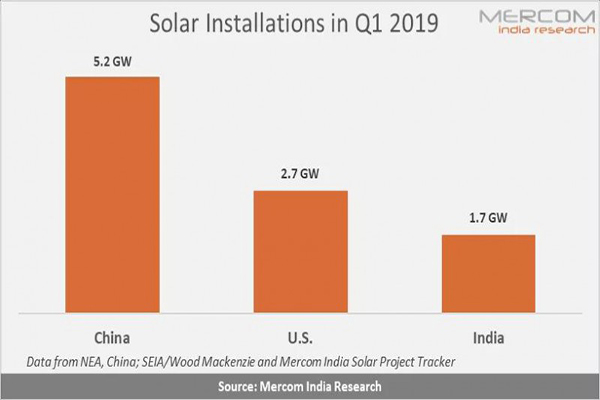 Mercom India Research預測,印度將在2019歷年增加約9吉瓦的太陽能發電量,Mercom估計,到2022年底,印度的太陽能裝機容量將達到71吉瓦,比政府設定的100吉瓦目標低近30%。然而,通過積極的推動和支持政策,目標似乎仍然可以實現。