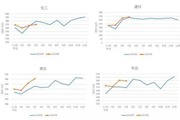 三、四大高載能行業用電同比增長,化工行業用電當月負增長