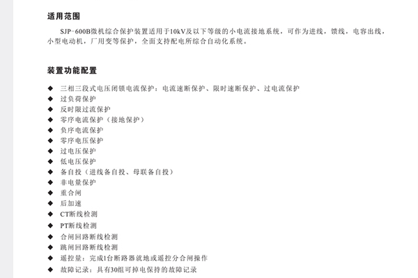 一、SJP-600B微機(jī)綜合保護(hù)裝置產(chǎn)品參數(shù)
