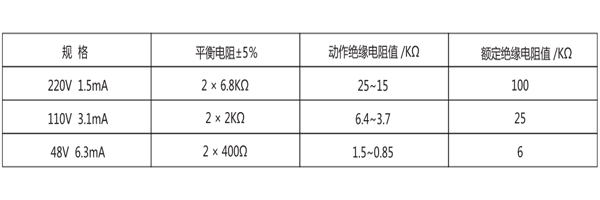 繼電器動作值:當母線任何一側對地絕緣電阻下降到下表規定值時.繼電器應可靠動作。