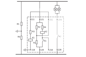 R1 ,R2( R1=R2 )絕為橋臂平衡電阻, R5 ,R6系直流母線對地絕緣電阻,靈敏元件K1跨接在地和平衡電阻之間。正常時,電橋平衡,靈敏元件繞組無電流通過。在一側絕線電阻下降時,便有一不平衡電流通過靈敏元件繞組,當不平衡電流達到一定值時動作,再由K1觸點接通K2繞組,隨即繼電器發出報警信號。