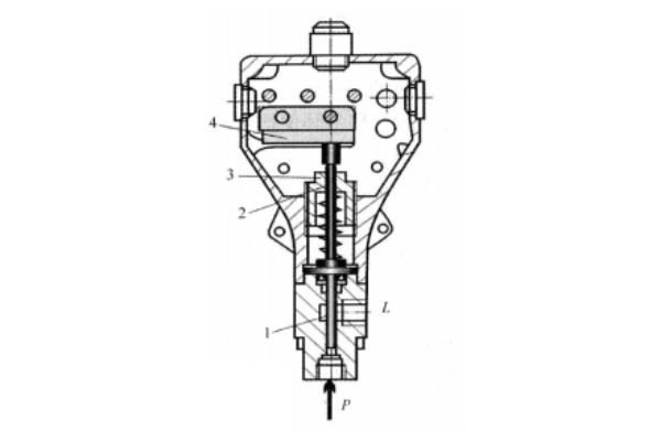 當從繼電器下端進油口3進入的液體壓力達到調定壓力值時,推動柱塞2上移,此位移通過杠桿放大后推動微動開關4動作。改變彈簧1的壓縮量,可以調節繼電器的動作壓力。