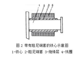 電器通電時,由于銜鐵處于釋放位置,氣隙大,磁阻大,磁通小,銅套阻尼作用相對也小,因此銜鐵吸合時延時不顯著(一般忽略不計)。