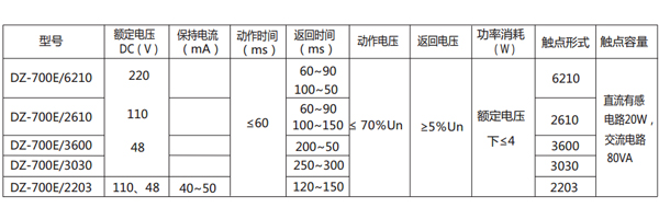 DZ-700E/2610中間繼電器主要技術(shù)數(shù)據(jù)見表