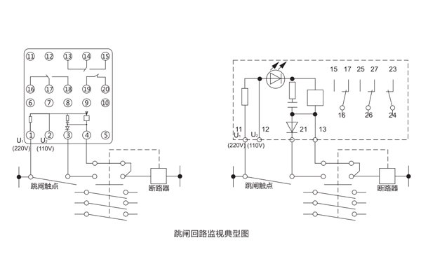 ZJS-21跳閘回路監(jiān)視繼電器可連續(xù)監(jiān)視斷路器中的直流電源及整個跳閘回路。當(dāng)直流電源消失、跳閘線圈及引線發(fā)生故障,繼電器經(jīng)0. 3秒延時返回并通過它的觸點(diǎn)發(fā)出報警信號。