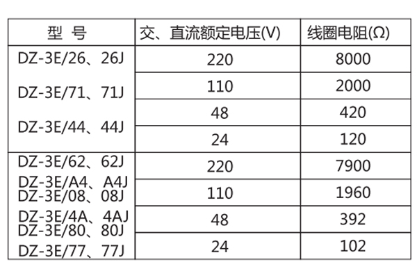 三、DZ-3E/77中間繼電器的參數