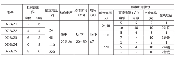 三、DZ-3/Z4中間繼電器的參數(shù)